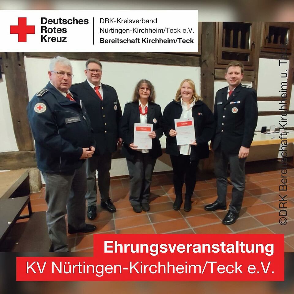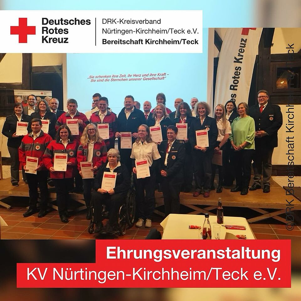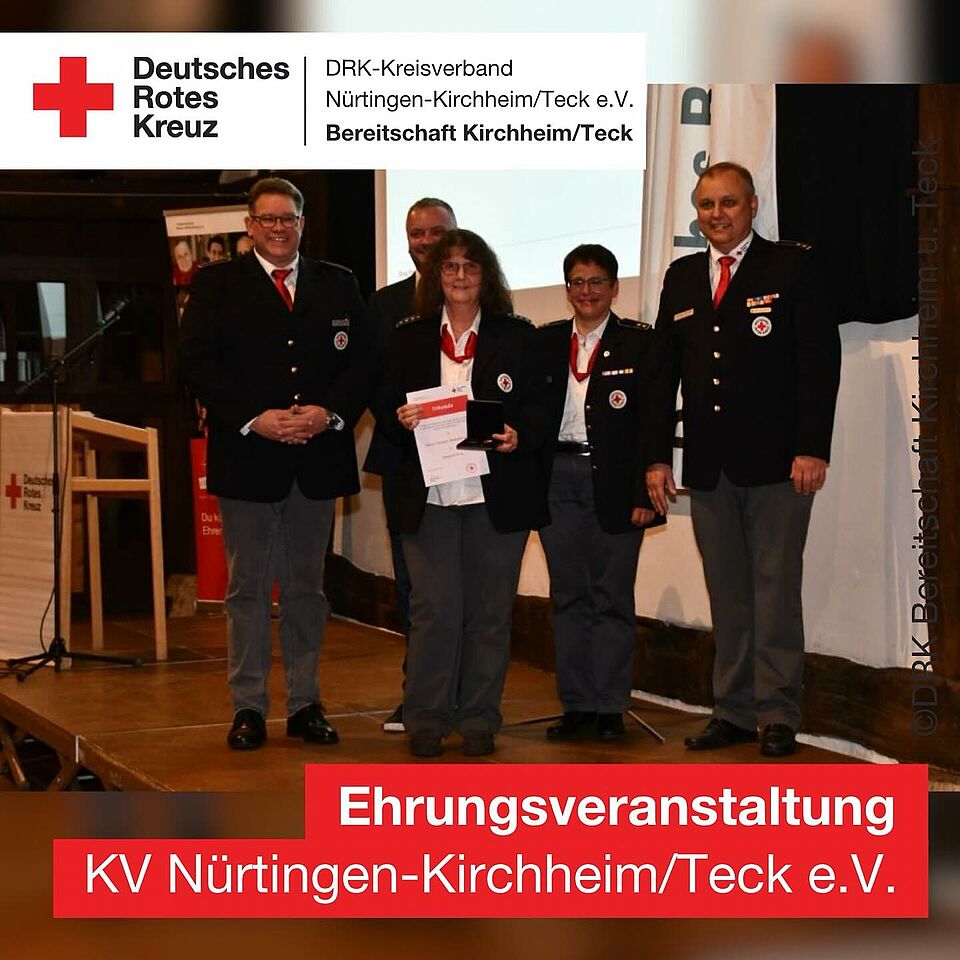 Neben der Verdienstmedaille des Kreisverbandes in Bronze, sind wir besonders stolz, dass mit der Henry-Dunant-Medaille in Gold dieses Jahr erneut die kreisverbandsweit höchste Auszeichnung an ein Kirchheimer Mitglied verliehen wurde.