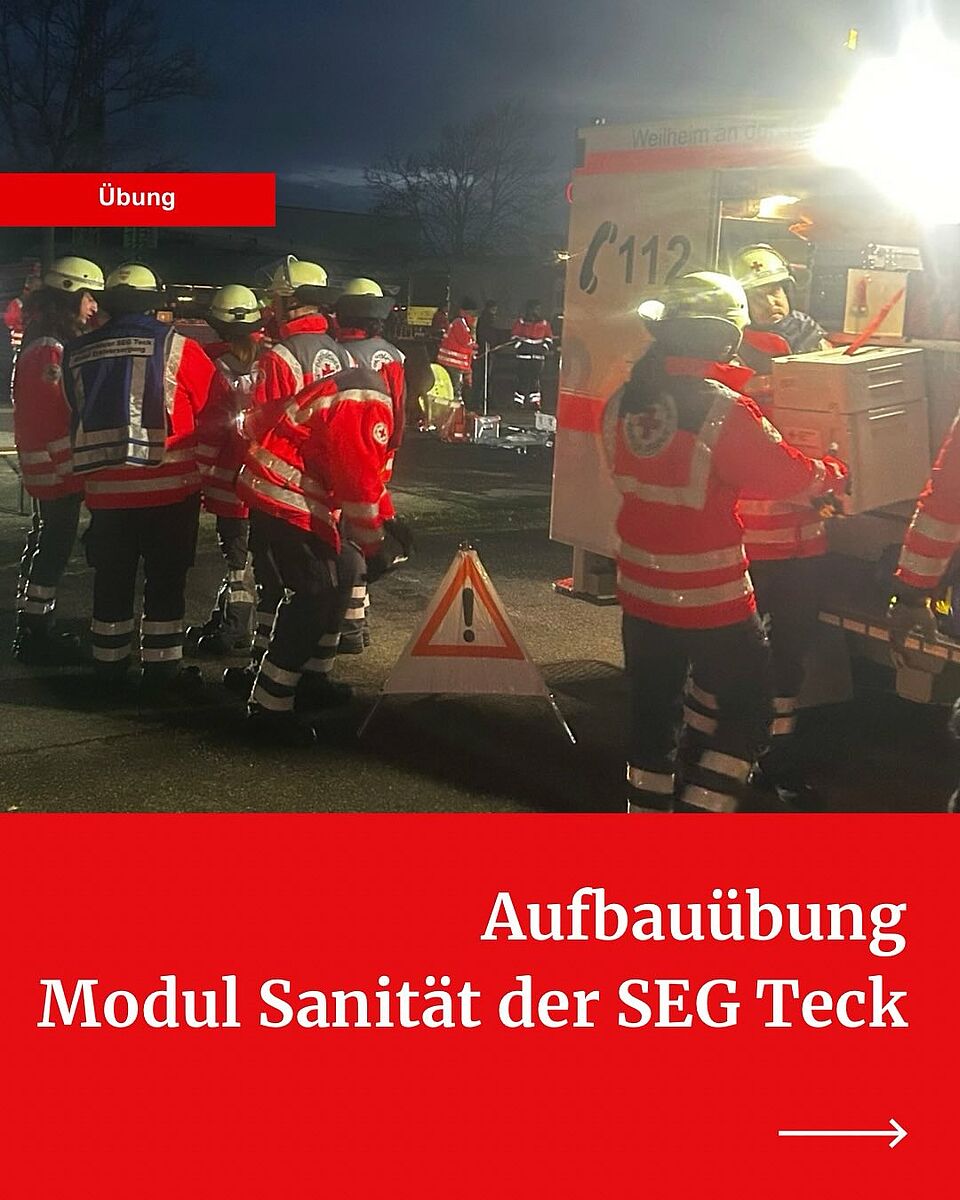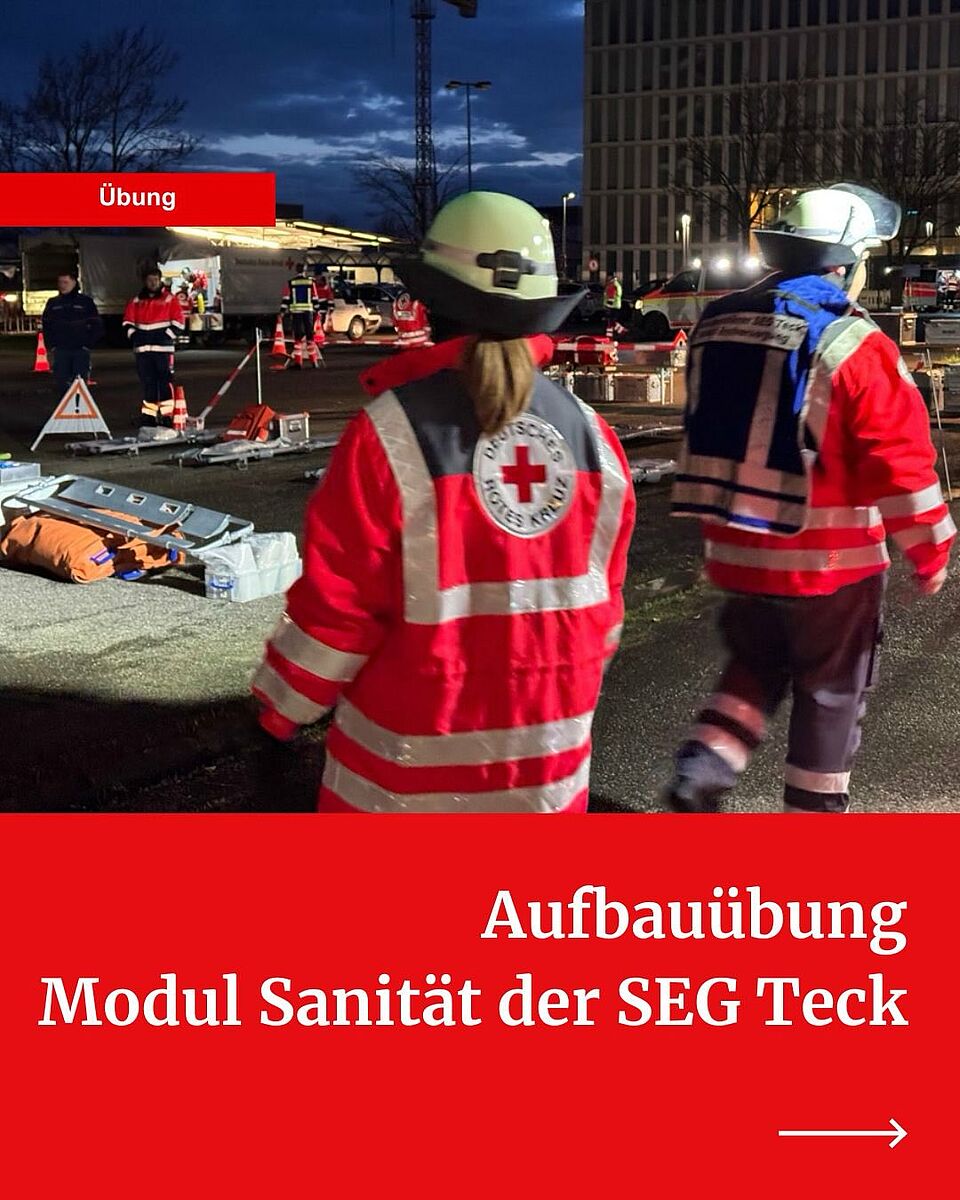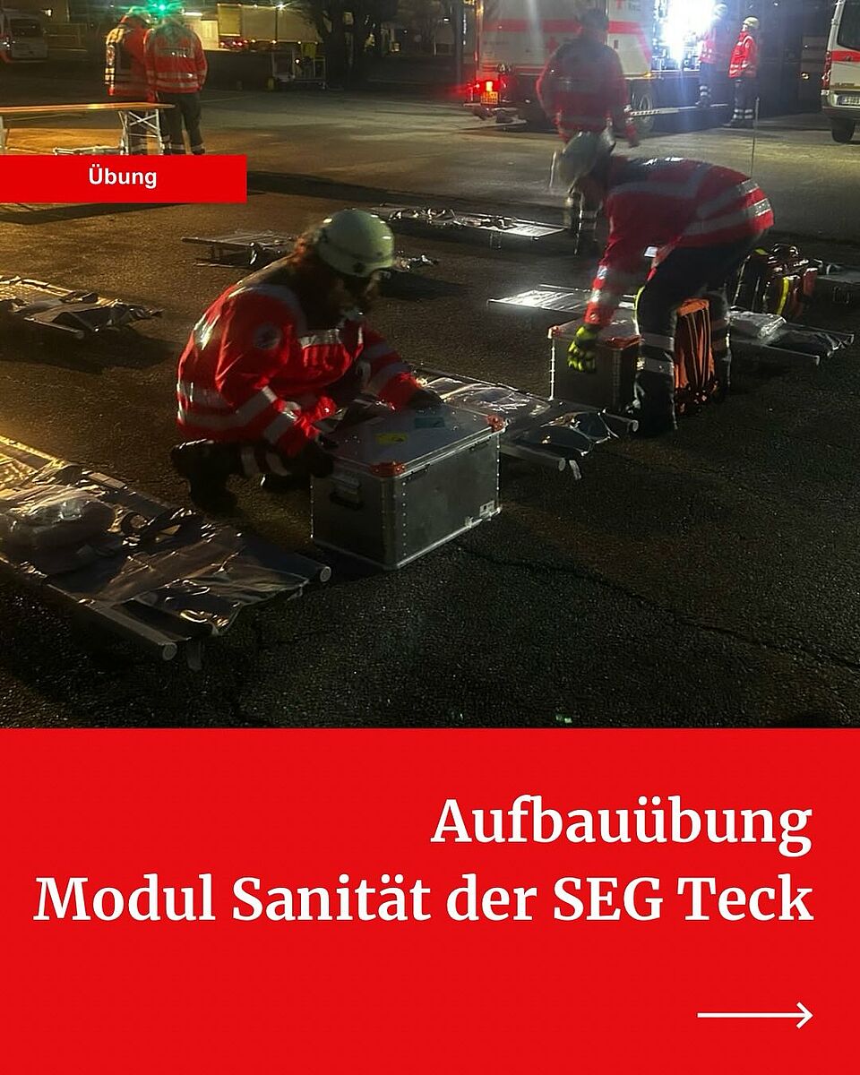 Zudem waren je ein Modul Führung und ein Modul Technik und Sicherheit des DRK Kreisverband Esslingen, die Transportorganisation „Checkpoint-T“ der Malteser Neckar-Alb sowie der DRK Rettungsdienst in die Übung involviert.