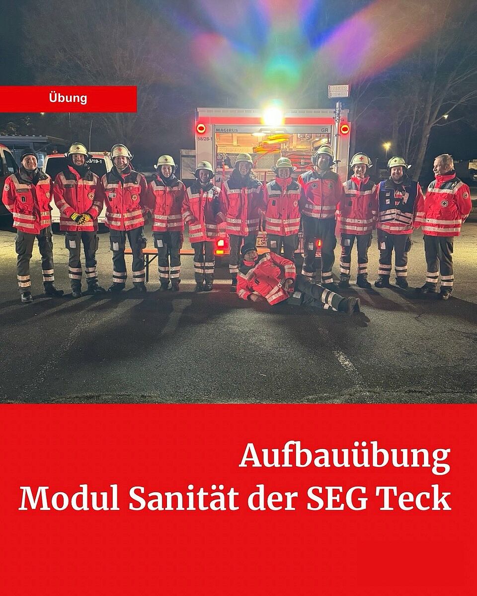 Das Modul Sanität der SEG Teck war mit zwei Fahrzeugen und neun Einsatzkräften in die Übung involviert. Zudem fungierten drei weitere Kräfte als interne Übungsbeobachter. (FP)
